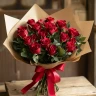 Этот великолепный букет, состоящий из 19 ярких красных роз, воплощает в себе силу и страсть любви. Каждая роза, аккуратно собранная в стильную крафтовую упаковку, словно говорит о глубоких чувствах и нежных эмоциях. Красный цвет символизирует не только романтику, но и преданность, делая этот букет идеальным подарком для вашей второй половинки. Крафтовая упаковка придаёт композиции естественный и современный вид, подчеркивая красоту и свежесть цветов.