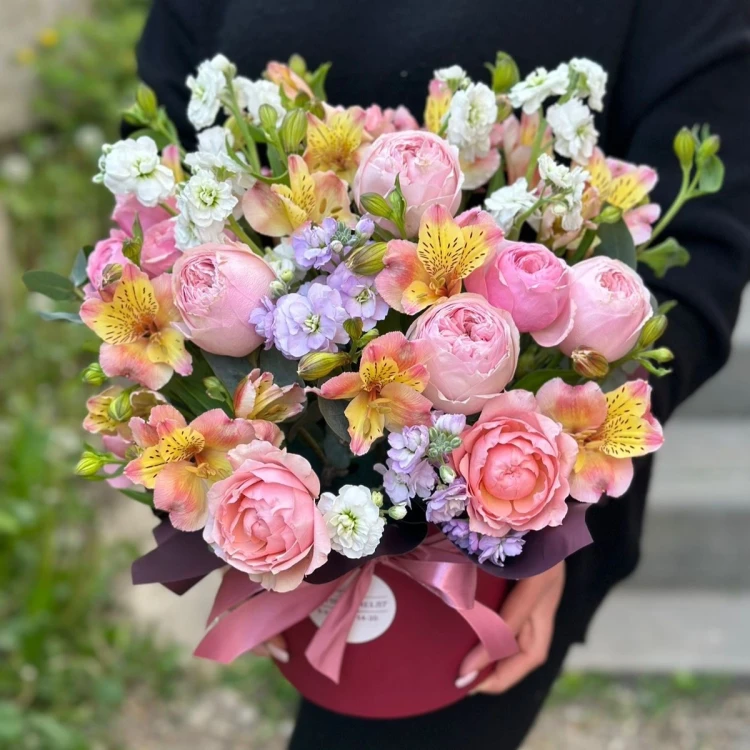 Этот потрясающий букет эмоций и нежности притягивает взгляд своей богатой палитрой чарующих оттенков и тонким ароматом. Кустовые розы, с изящно раскрывающимися пышными цветами, придают композиции игривость и легкость, а одноголовые розы добавляют изящества и элегантности. Каждый цветок является уникальным произведением искусства природы. Упаковка, украшенная изысканными деталями, подчеркивает драгоценность этого букета. Это настоящее проявление любви и заботы, идеальный подарок для особого случая или просто, чтобы подарить радость и улыбку.