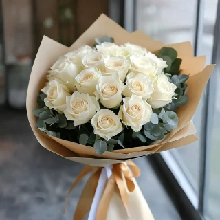Этот изысканный букет "Светлая гармония" состоит из 17 нежных белых роз, символизирующих чистоту и искренность чувств. Каждая роза словно воплощает светлые эмоции, наполняя пространство теплом и радостью. В сочетании с ароматным эвкалиптом, который добавляет нотки свежести и зелени, букет выглядит особенно стильно и современно.